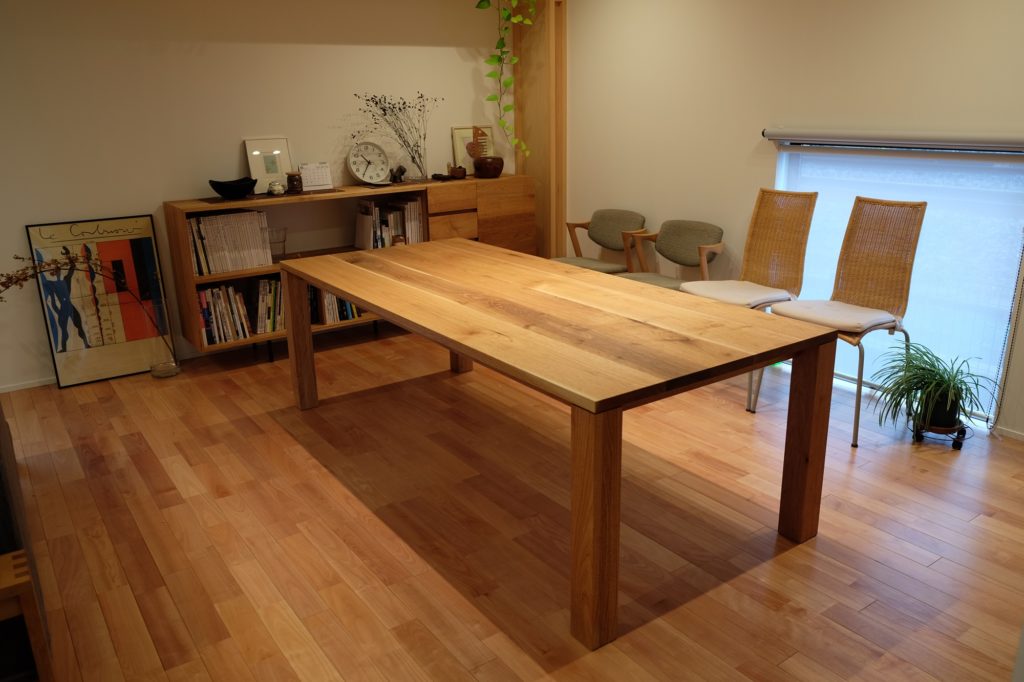 shelf #3 item: shelf #3size: W2200 x D421 x H900mmprice : 343,000 yen(inc.tax)material: クルミ 鉄脚 クルミ材のシェルフとなります。左側はオープン、右側は抽斗と扉の収納スペースとなっております。
